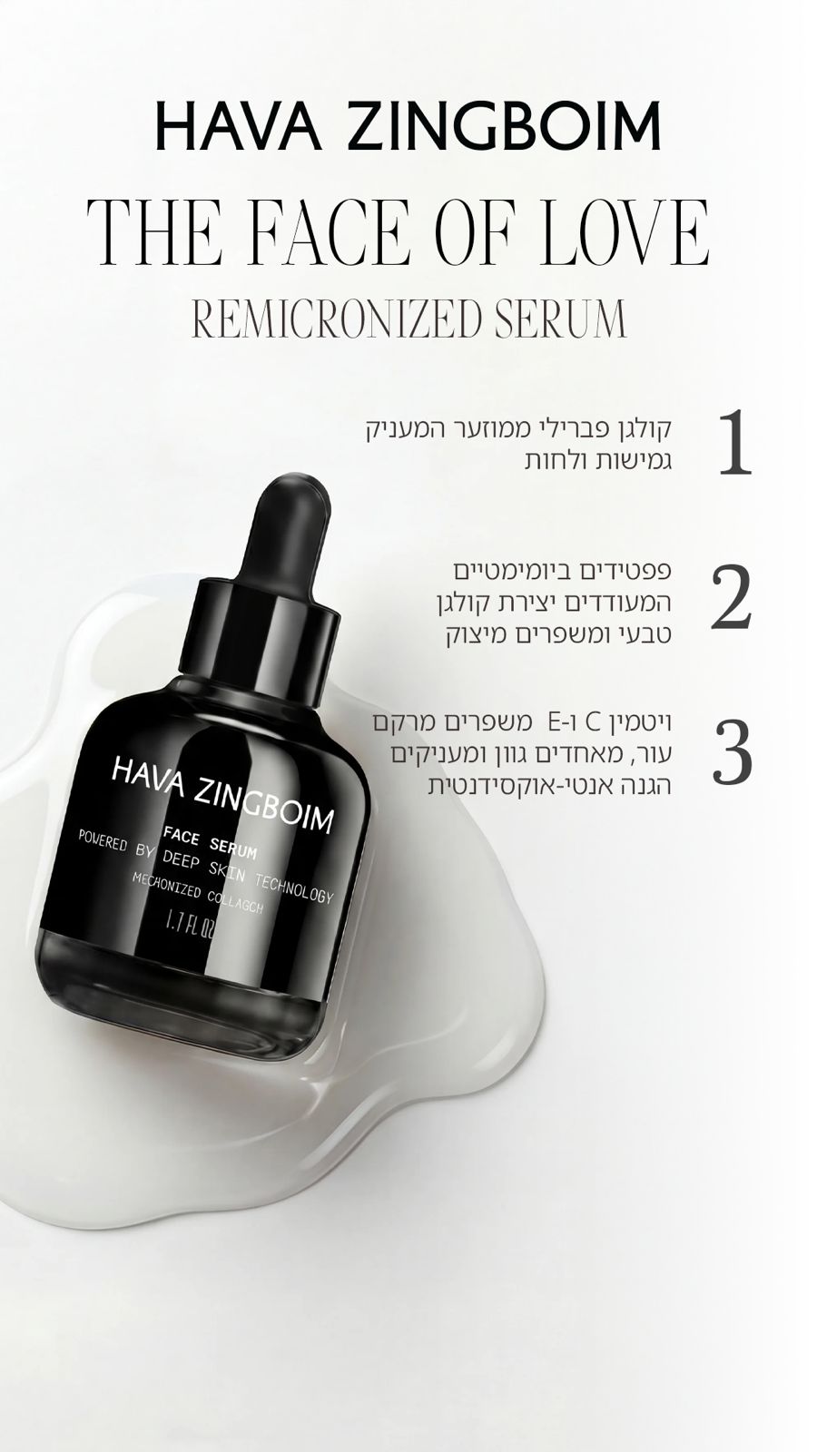 ✅סרום REMICRONIZED המכיל קולגן ממוזער בטכנולוגיה בלעדית ® HZMT ופפטידים ביומימטיים.